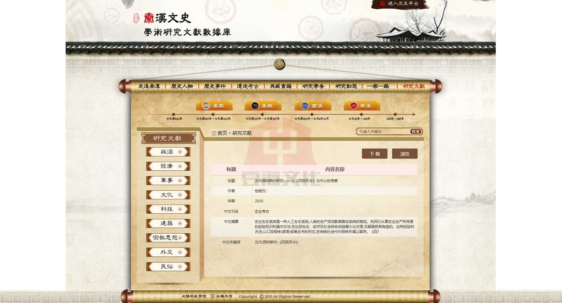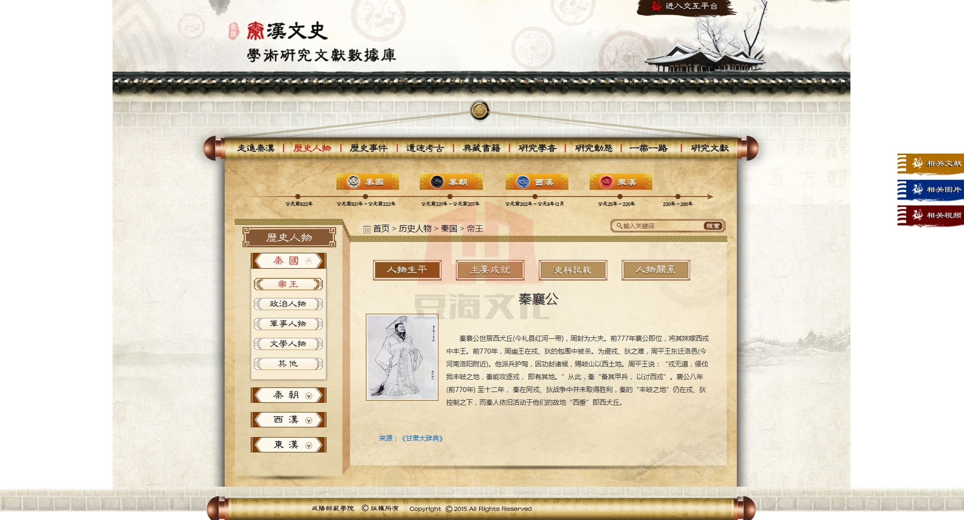 qinhanwenshixueshuyanjiuwenxiankushigeixianyangshifanxueyuanjiandewenshileideteseshujuku,xianyangshifanyongyounonghoudeqinhanwenhuayanjiufenwei,zaijianshegaixiangmushijiehebenxiaotesexuekejianshe,chuangjianqinhanwenhuatesewenxianku。zaishejiyemiandeshihouwomenjiaruledaliangde"秦漢元素",力求在細節上也能體現主題特色。
