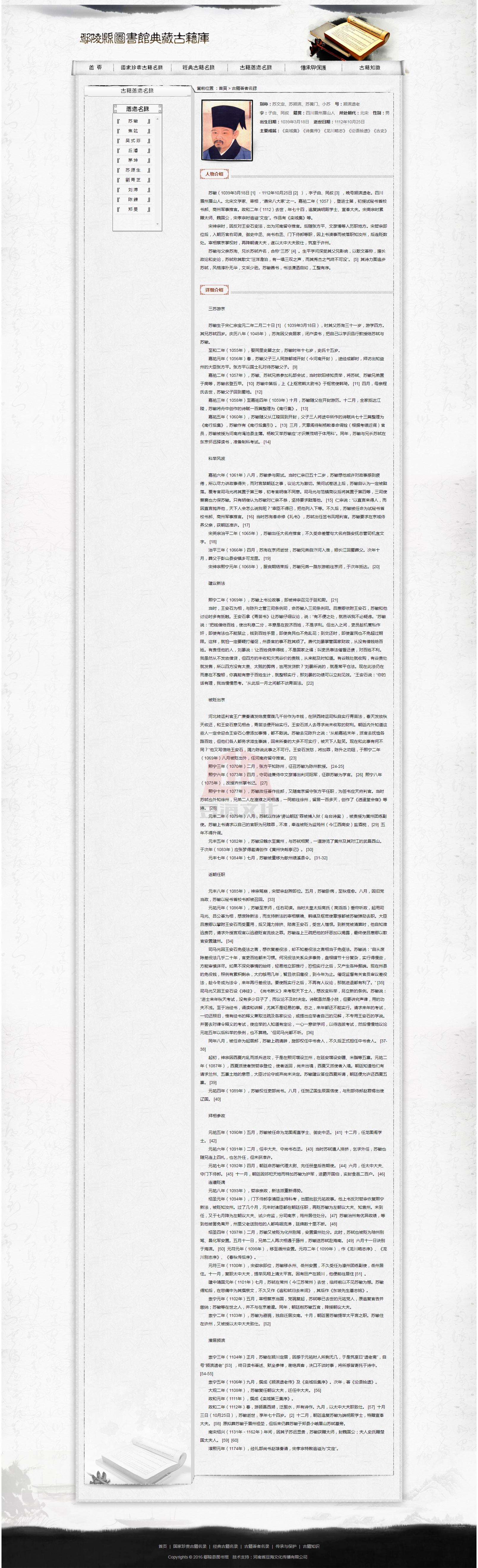 古籍文獻數據庫擬包含六大欄目:縣館傳承與發展、國家級珍貴古籍、省級珍貴古籍、經典古籍、古籍作者庫、古籍知識。
