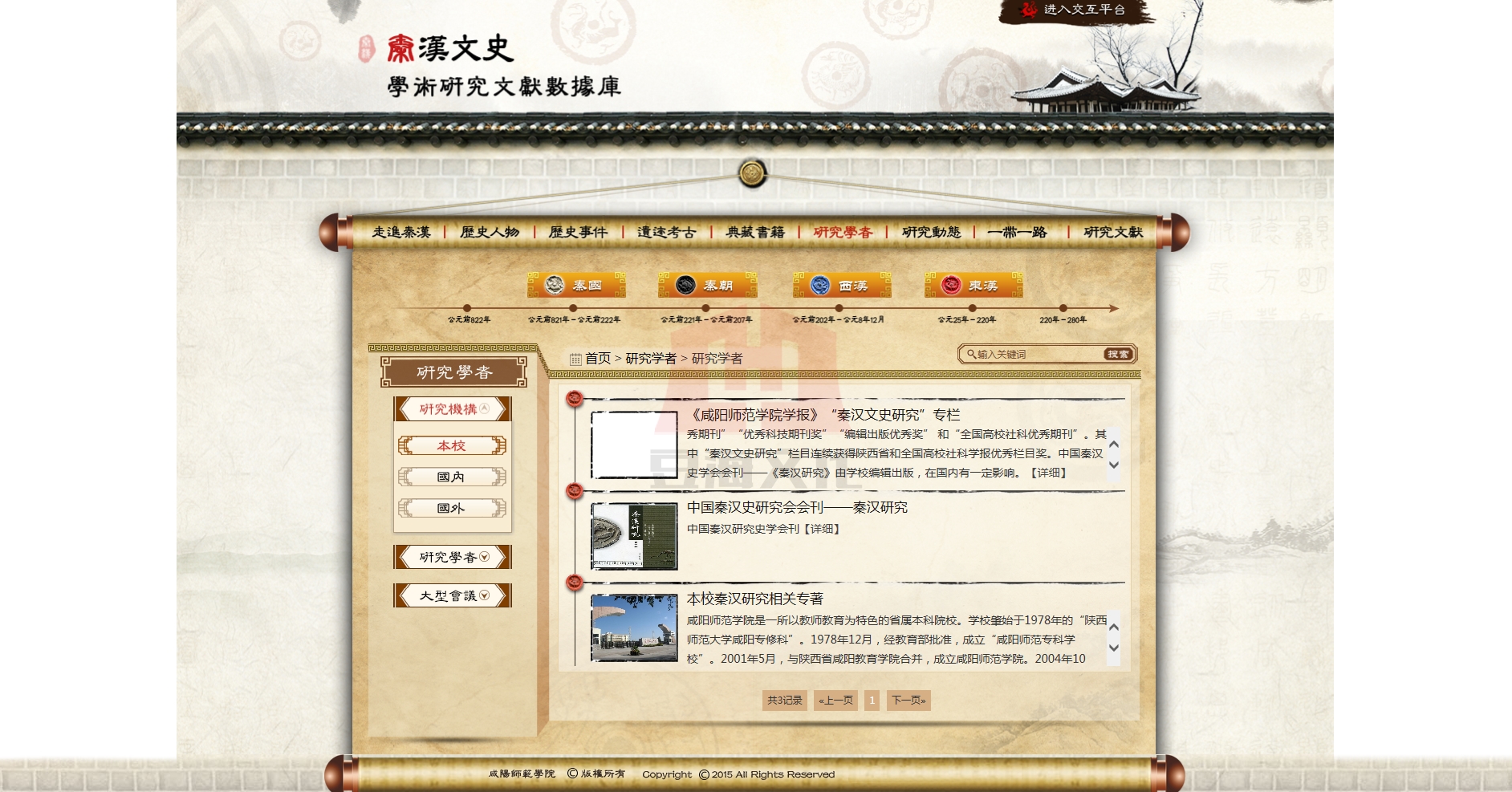 qinhanwenshixueshuyanjiuwenxiankushigeixianyangshifanxueyuanjiandewenshileideteseshujuku,xianyangshifanyongyounonghoudeqinhanwenhuayanjiufenwei,zaijianshegaixiangmushijiehebenxiaotesexuekejianshe,chuangjianqinhanwenhuatesewenxianku。zaishejiyemiandeshihouwomenjiaruledaliangde"秦漢元素",力求在細節上也能體現主題特色。