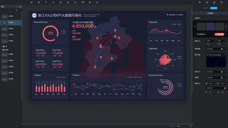 3、可視化拖拽,拖拽式自由布局,多種圖表、控件、表格等組件任你擺放,想怎麼放就怎麼放。